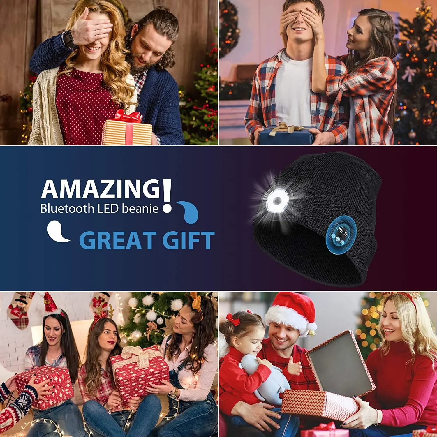 Auriculares inalámbricos con Bluetooth 5,0 para música, gorro con luz LED, altavoces estéreo HD, auriculares manos libres, micrófono para llamadas, Invierno