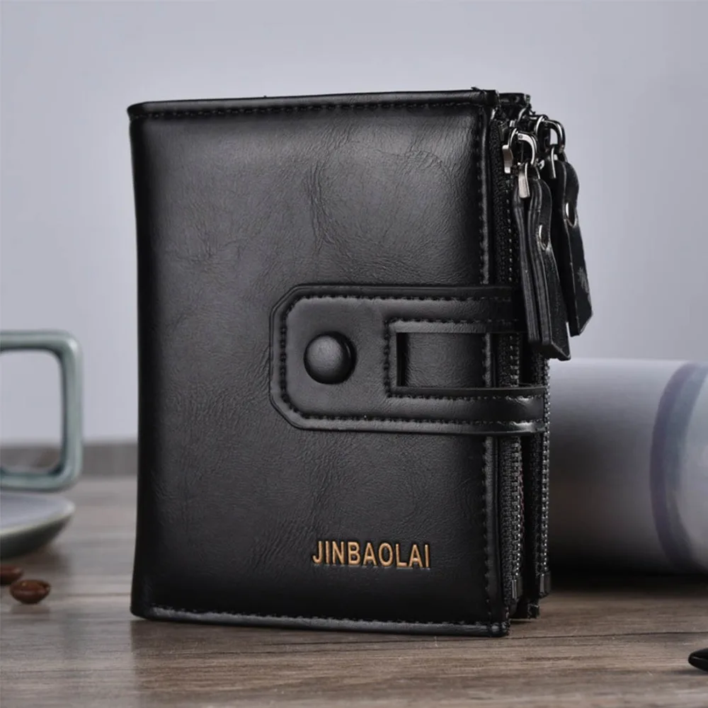 Billeteras cortas de cuero PU para hombre, monederos con doble cremallera, tarjetero, bolsillo para monedas, carteras de marca Vintage de alta calidad, 2024