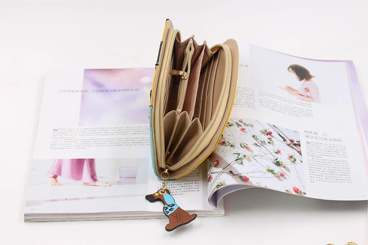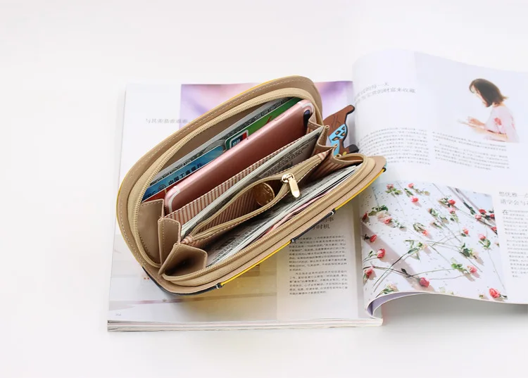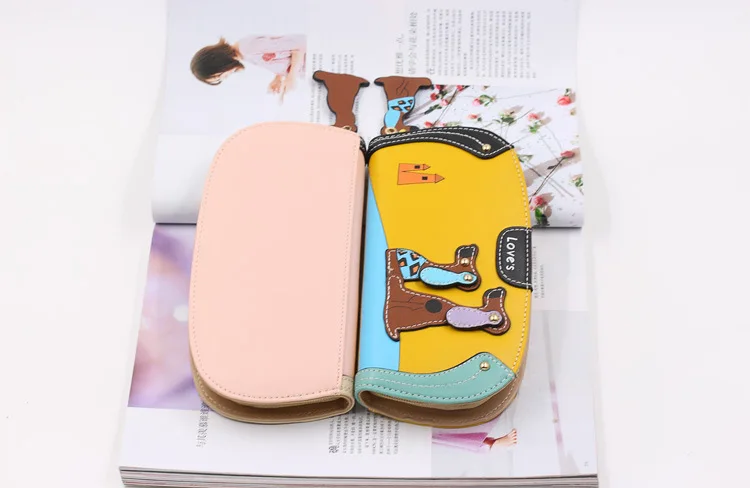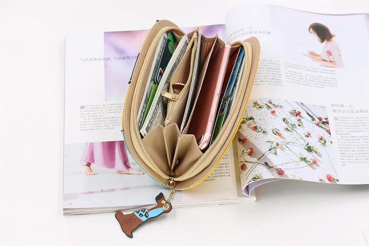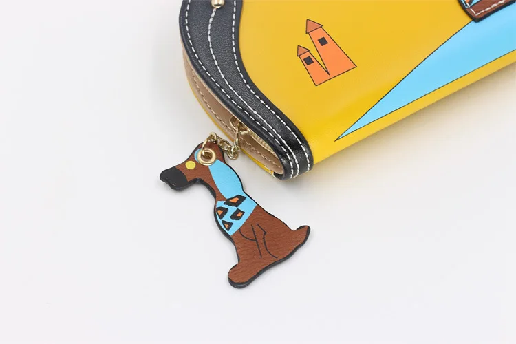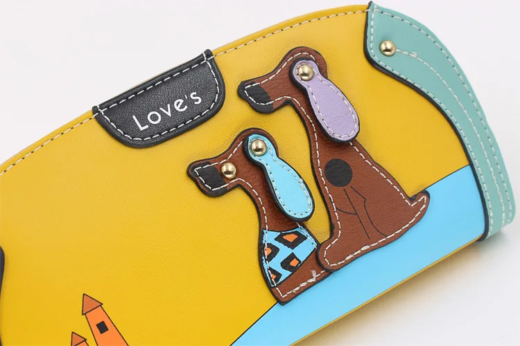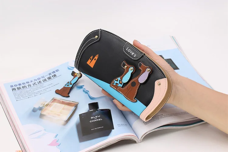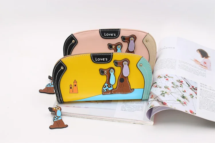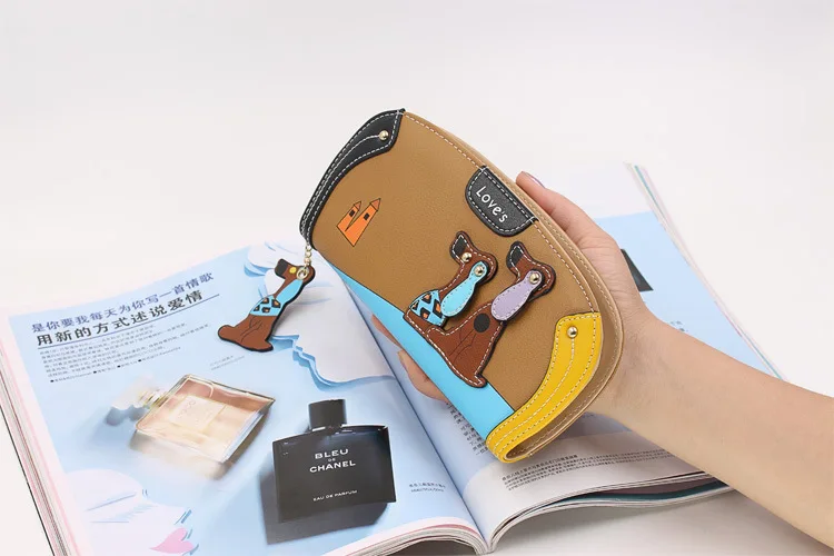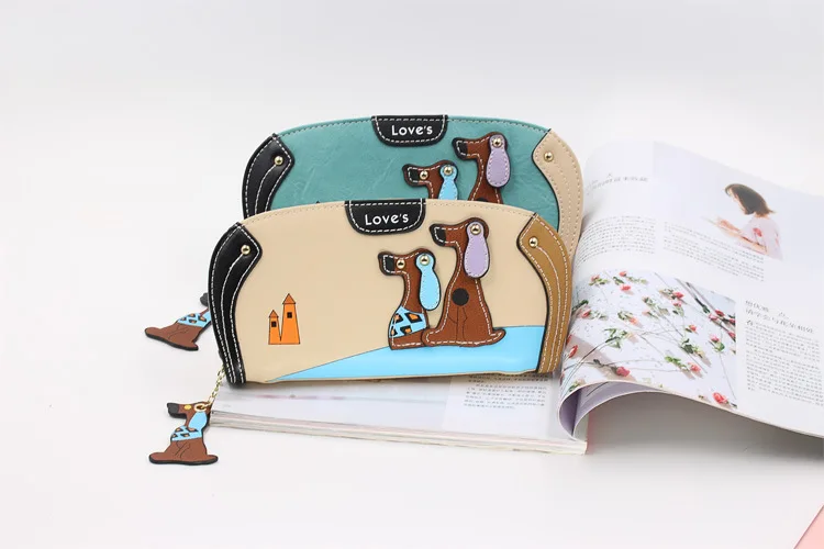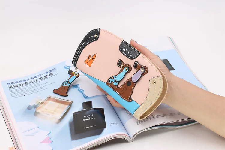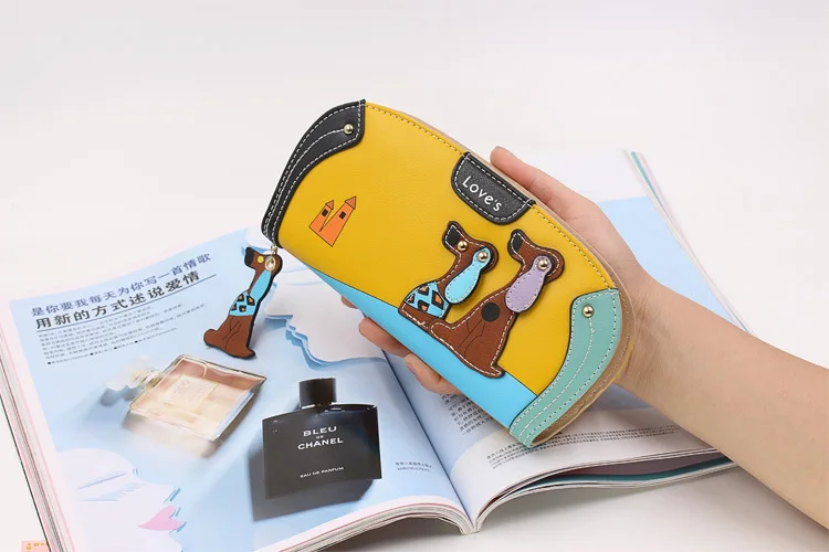 Cartera larga con cremallera para mujer, bolso de mano de gran capacidad de cuero PU con patrón de perro, Color contrastante, moda Retro, resistente al agua