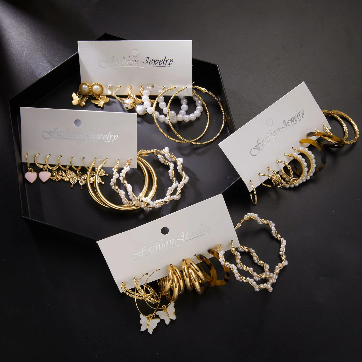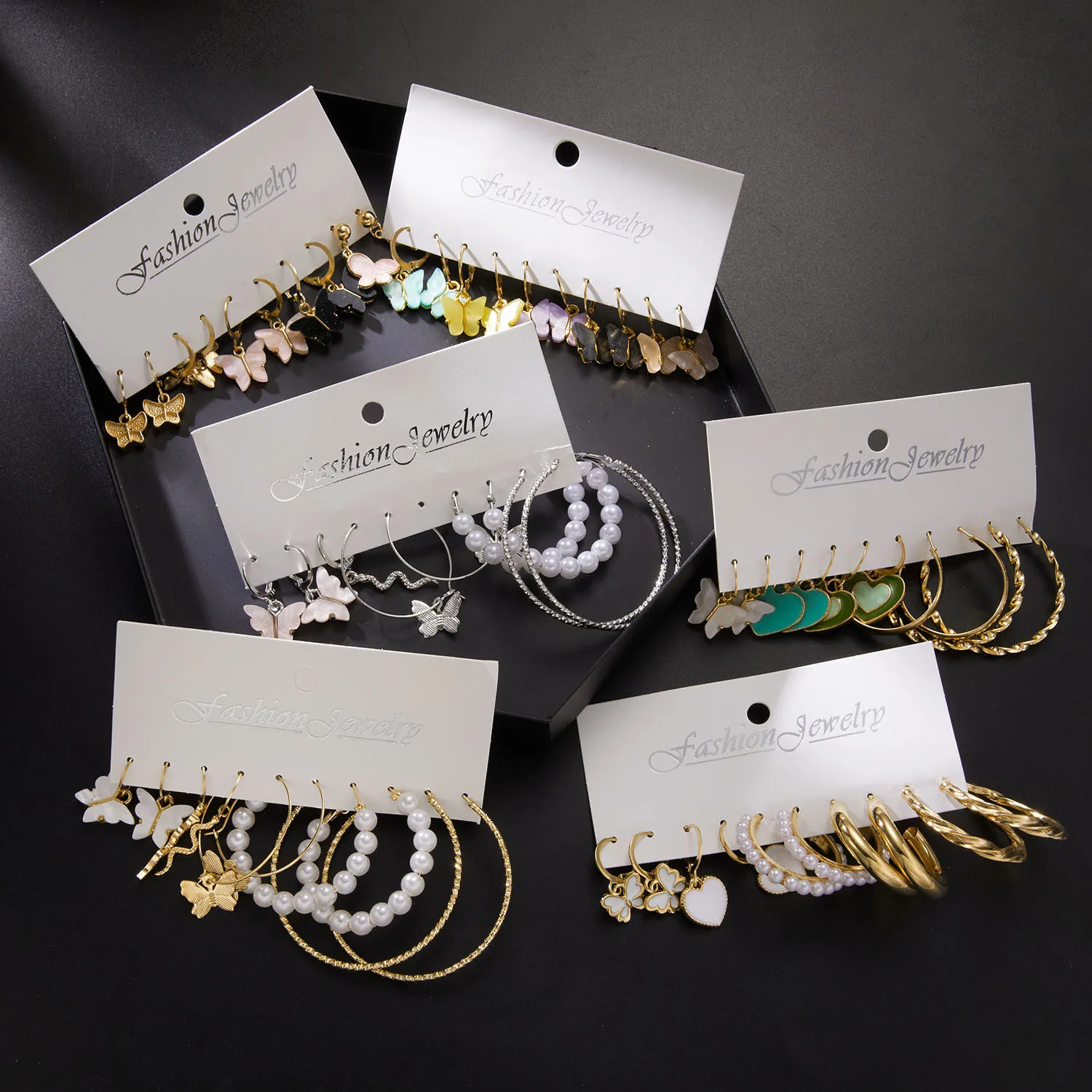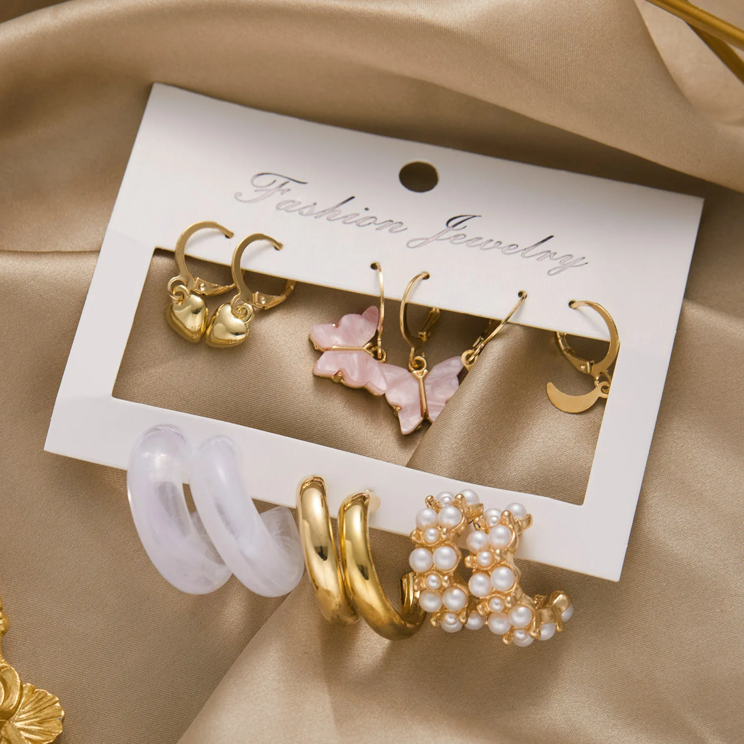 Conjunto de pendientes de aro de Color dorado geométrico Vintage, perlas de imitación, acrílico, mariposa, corazón, pendientes colgantes, regalos de joyería de tendencia