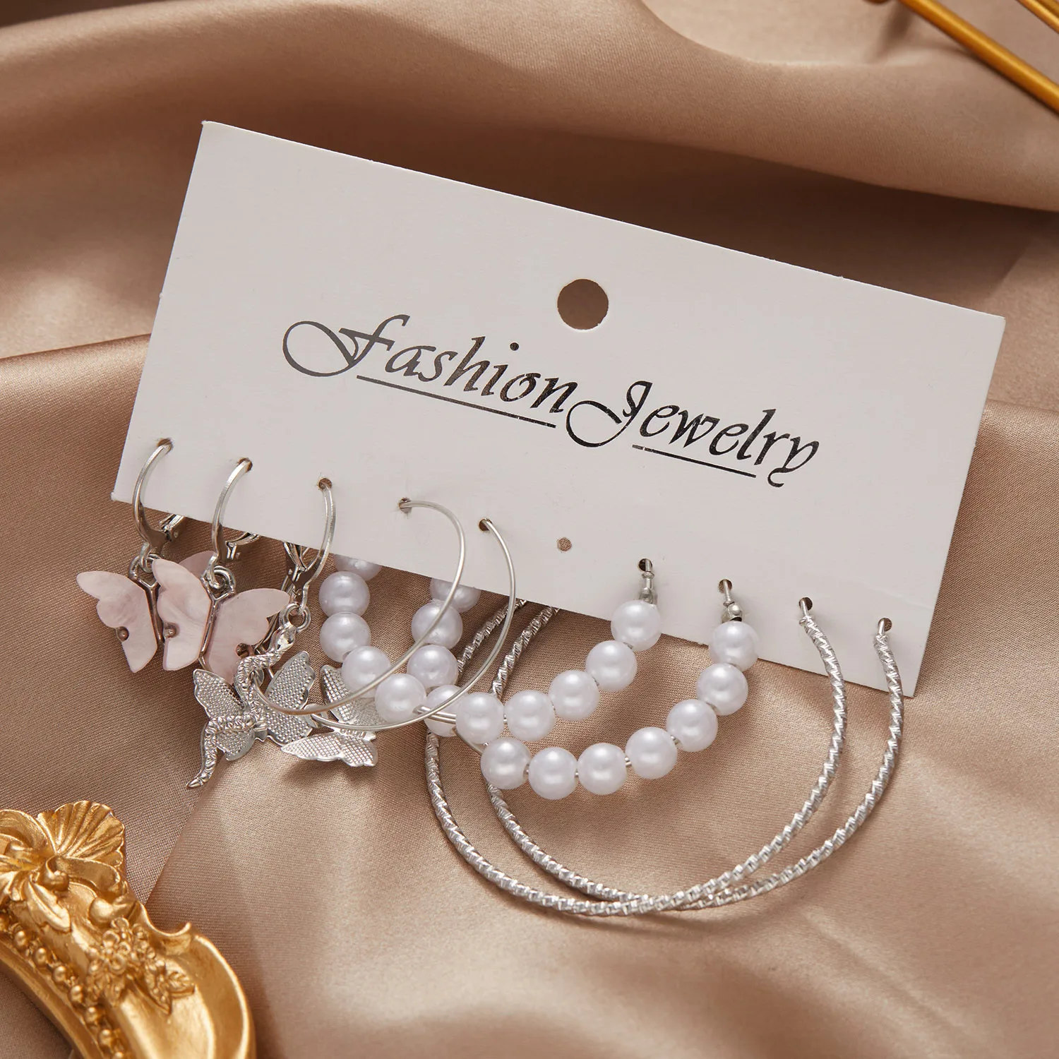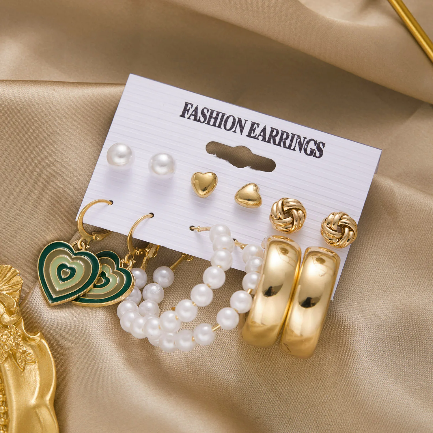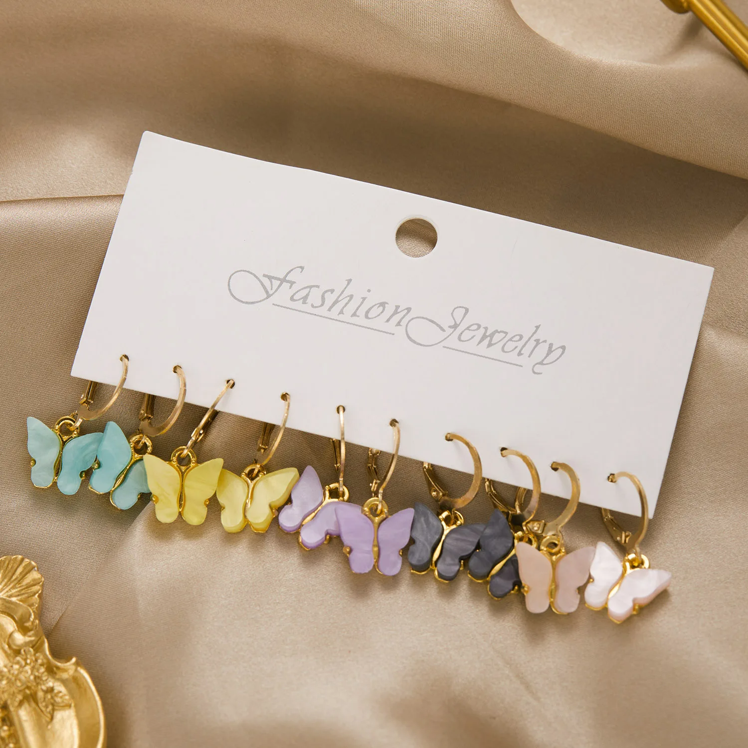 Conjunto de pendientes de aro de Color dorado geométrico Vintage, perlas de imitación, acrílico, mariposa, corazón, pendientes colgantes, regalos de joyería de tendencia