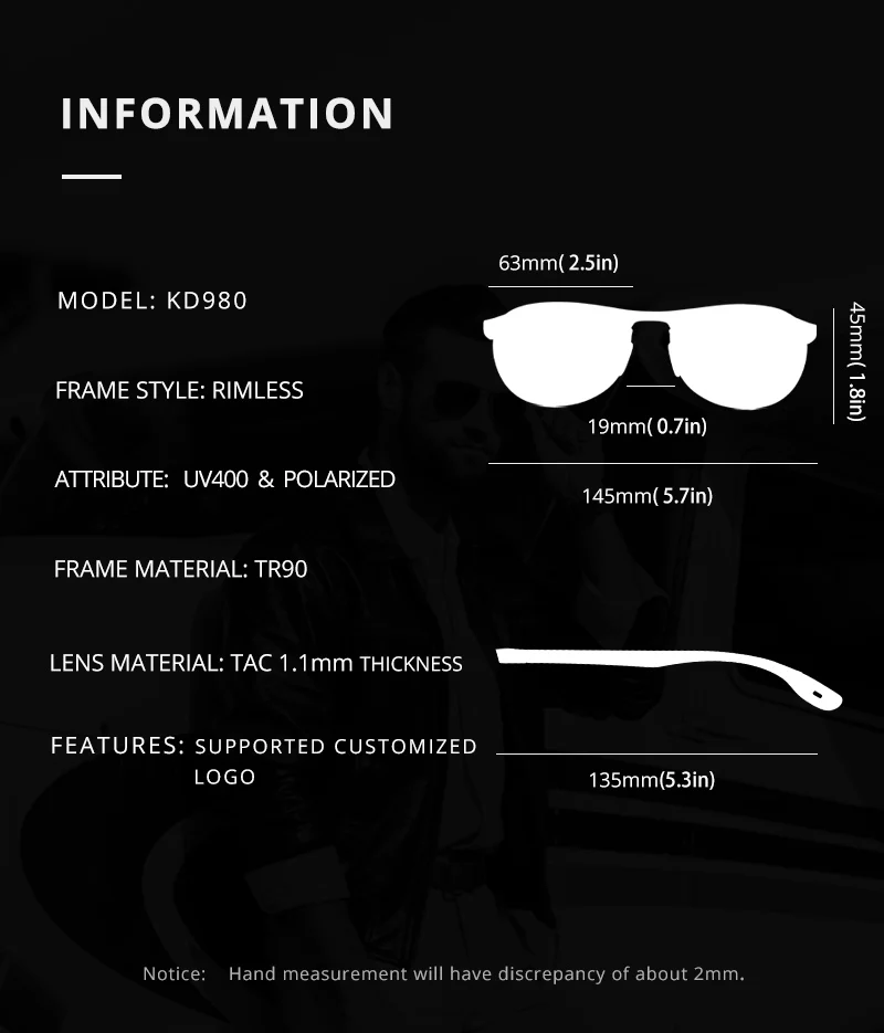 KDEAM-gafas de sol ovaladas sin montura para hombre, lentes polarizadas TR90, Material TAC, cubierta de pie de goma suave