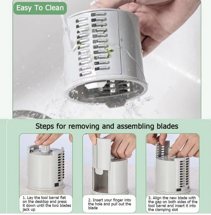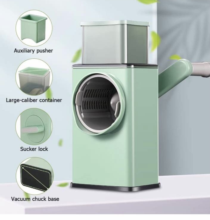 Diseño humanizado: El molinillo de verduras giratorio de tipo tambor raz» tiene fuertes pies de succión para una mayor estabilidad en la mesa. ¡Esto lo hace eficiente y fácil de operar!